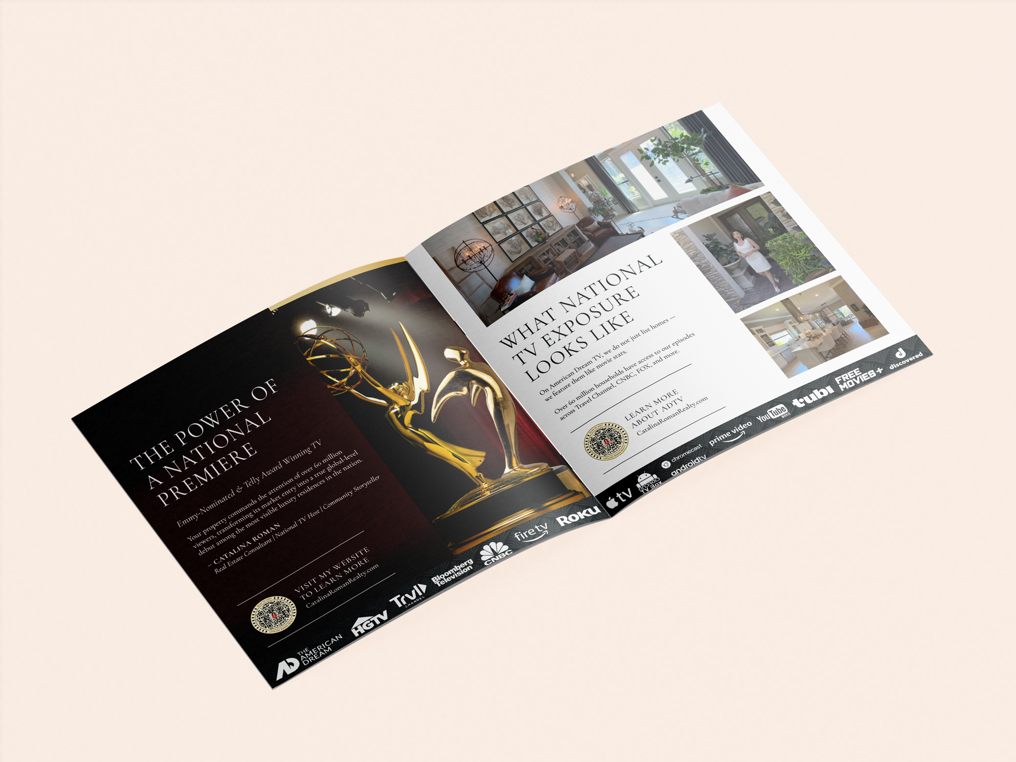 Catalina Roman, a Tampa-based luxury real estate agent and American Dream TV host, partnered with me to concept and develop a refined brand identity and a cohesive suite of marketing materials designed to elevate her presence across print and digital channels.